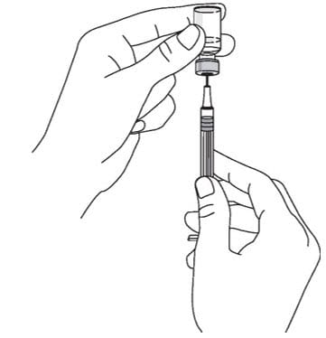 - Push down on the plunger until all of the air has gone from the syringe into the vial.