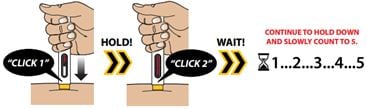 After “Click 2,” continue to hold down and slowly count to 5 to make sure you receive your full dose.