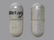 This clear capsule-shape pill with imprint Metanx on it has been identified as: Metanx fc L-methylfolate calcium 3 mg / pyridoxal-5´-phosphate 35 mg / methylcobalamin 2 mg.