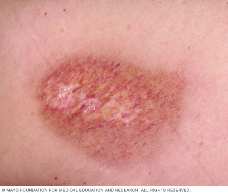 - Scars or ridged areas caused by an overgrowth of scar tissue (keloids)